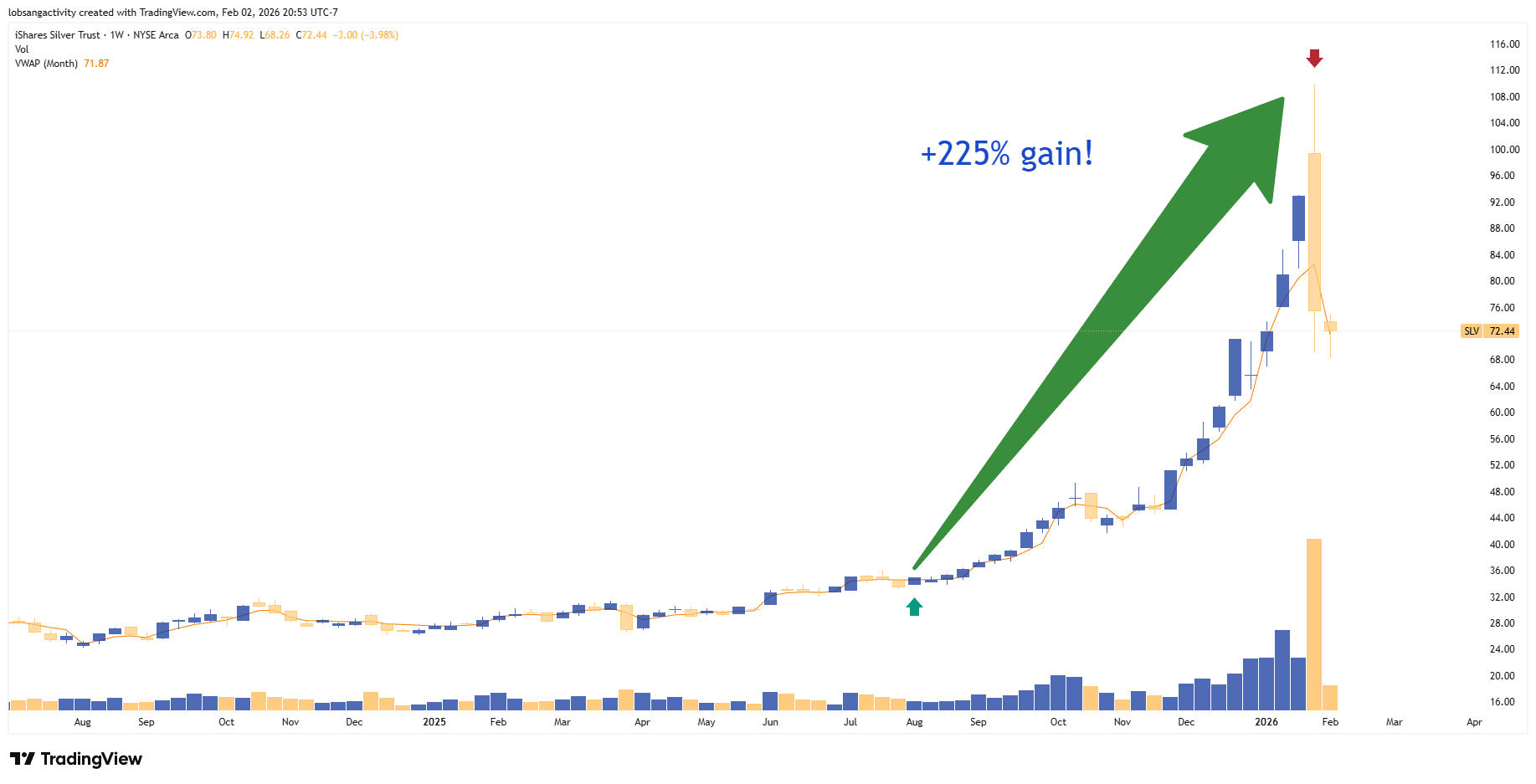 FYI, $SLV only spent three sessions north of $100, and dropped to $68 before stabilizing just above $70.